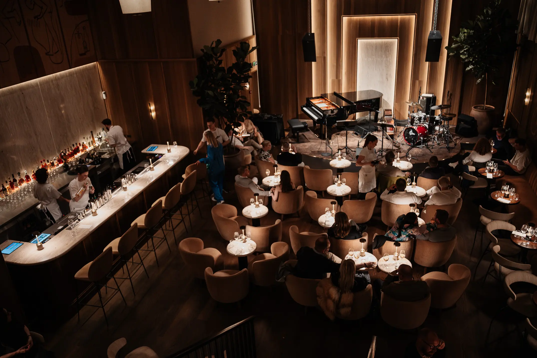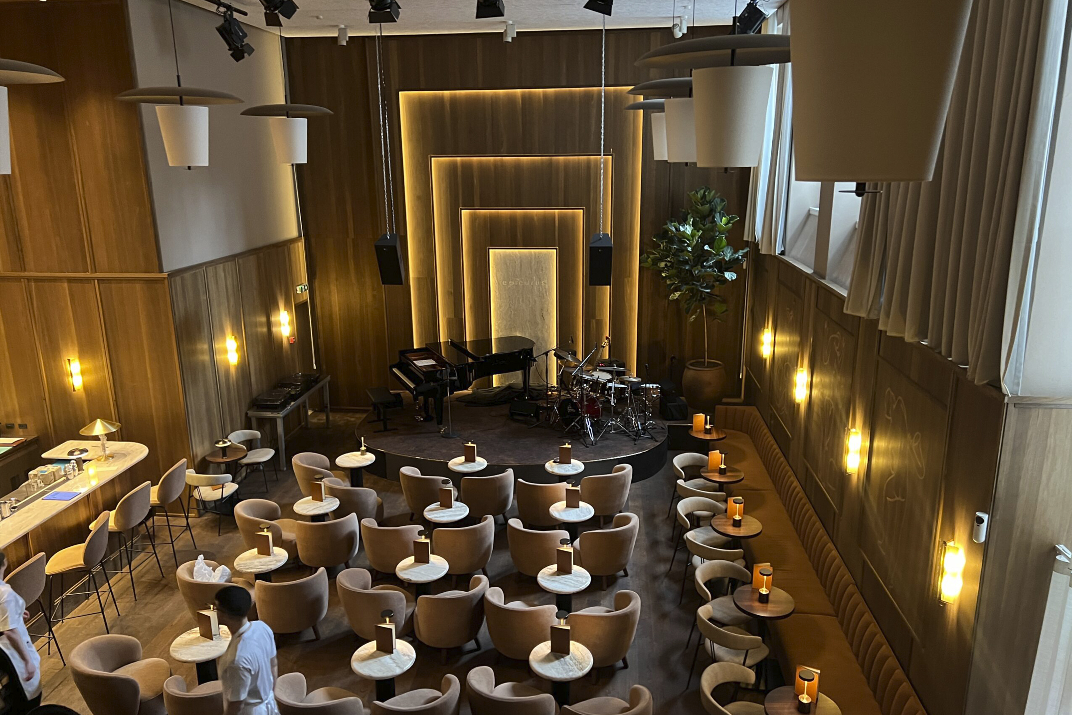 I hjertet af København har en tidligere restaurant fået nyt liv som en stemningsfuld jazzklub Epicurus, hvor arkitektur og akustik spiller sammen for at skabe den rette atmosfære.